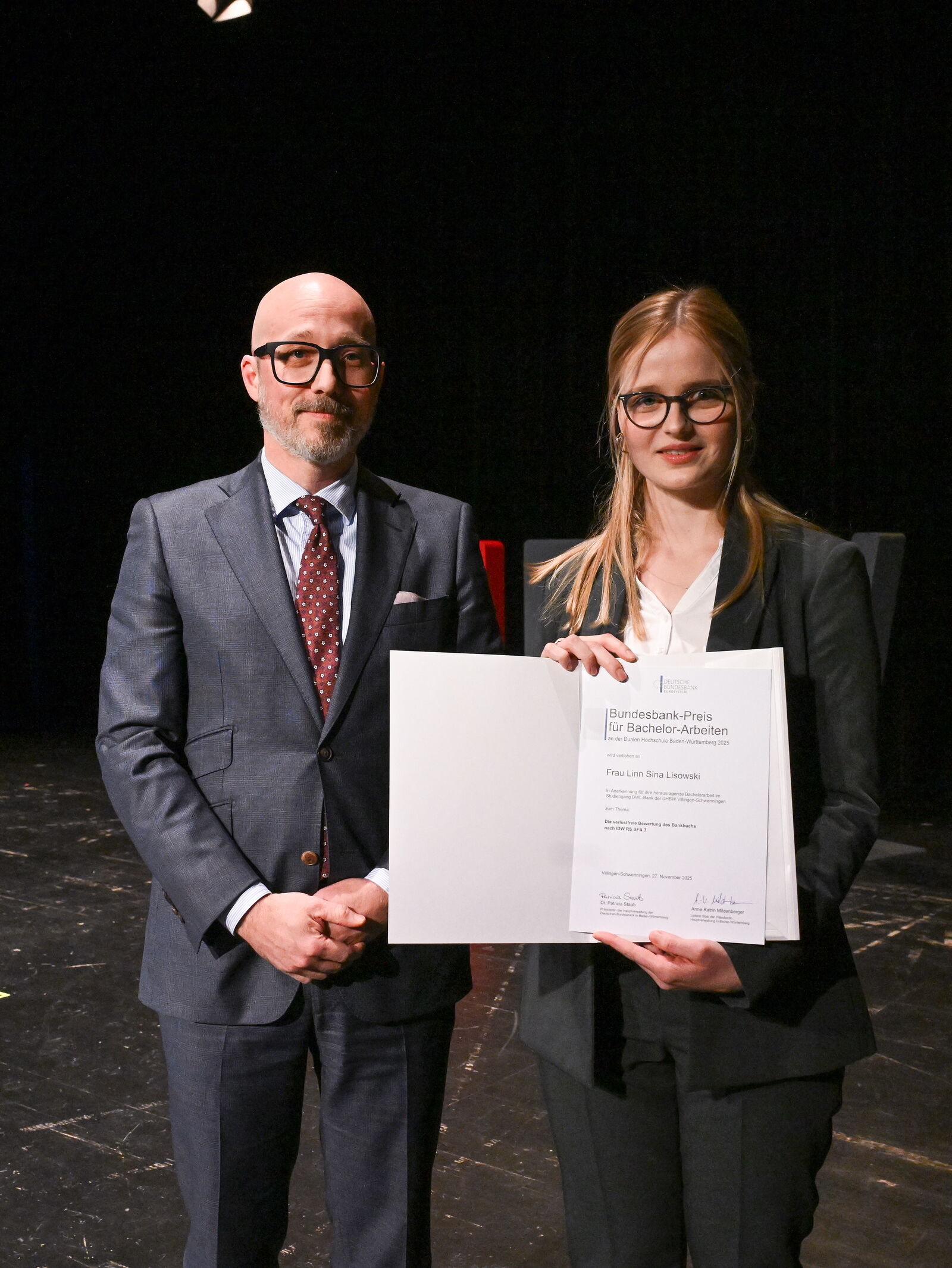 Im Rahmen der Feiern ehrte die DHBW außerdem drei besonders herausragende Bachelorarbeiten. In RSW – Steuern und Prüfungswesen wurde die Arbeit von Nepomuk Lorenz ausgezeichnet, in RSW – Wirtschaftsprüfung die von Tom Merz, und im Sozialwesen erhielt Berra Saglam eine Würdigung für ihre Abschlussarbeit. Eine Premiere bot die erstmalige Vergabe des Bundesbank-Preises, der bundesweit nur dreimal verliehen wird und an Linn Sina Lisowski überreicht wurde. Ebenfalls neu waren die von der Annette-Hechinger-Stiftung ausgelobten Preise für die besten Studienleistungen im Studiengang RSW – Steuern und Prüfungswesen.