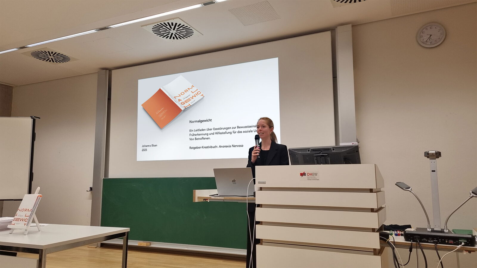 Ein Thema, das oft im Verborgenen bleibt und dennoch viele Menschen betrifft, stand im Mittelpunkt eines Campus-Abends an der DHBW Villingen-Schwenningen: Essstörungen und der Umgang damit – persönlich, gesellschaftlich und fachlich reflektiert. Zu Gast war Johanna Elsen, die in ihrem Vortrag eindrücklich Einblicke in ihre Auseinandersetzung mit diesem sensiblen Themenfeld gab.